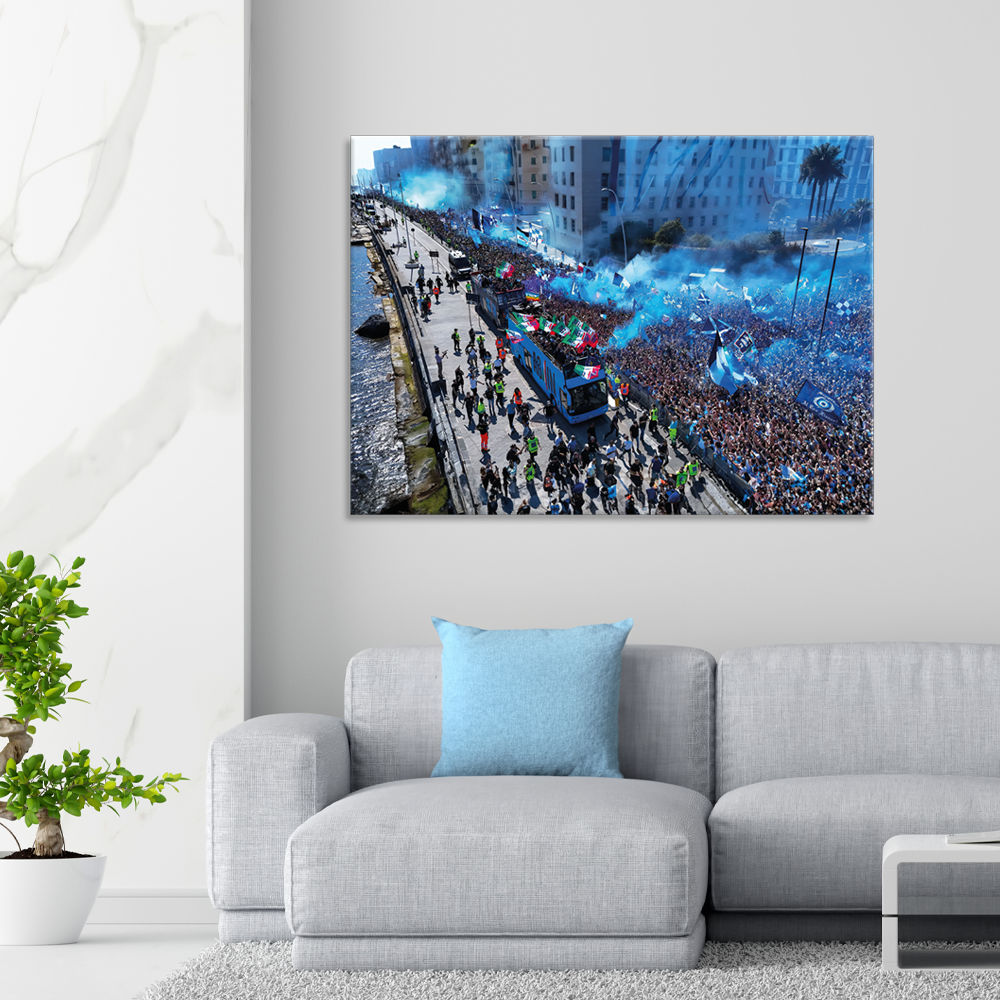 Quadro su Tela 4° Scudetto del Napoli Campioni d’Italia Bus Festa Mergellina