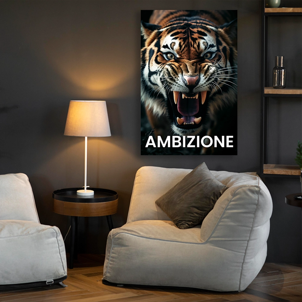 Ispirati alla potenza e alla determinazione con il quadro “Ambizione with Tiger”. Questa straordinaria opera d’arte su tela cattura l’essenza della forza e della leadership, raffigurando una magnifica tigre. Stampato su tela di alta qualità e montato su un robusto telaio in legno di abete, è pronto per essere appeso appena ricevuto.