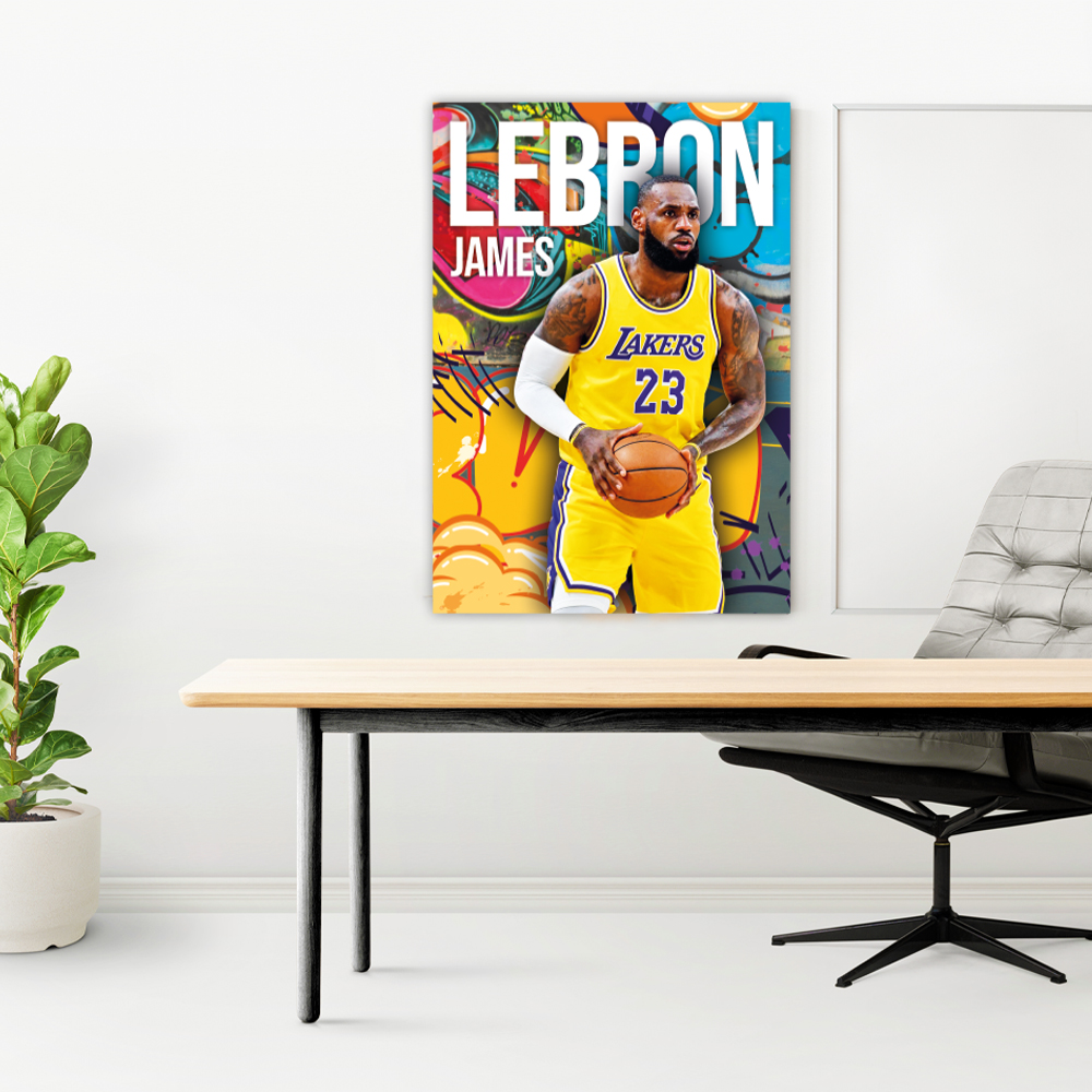 Il quadro “La Leggenda: LeBron James” è un’opera che celebra la grandezza e l’influenza di uno dei più iconici giocatori di pallacanestro di tutti i tempi. Al centro della tela emerge l’imponente figura di LeBron James, ritratto con un dettaglio sorprendente e una fedeltà straordinaria.