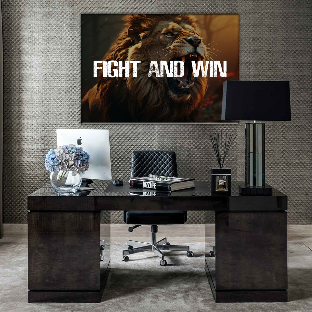 Quadro su Tela Lion Fight and Win