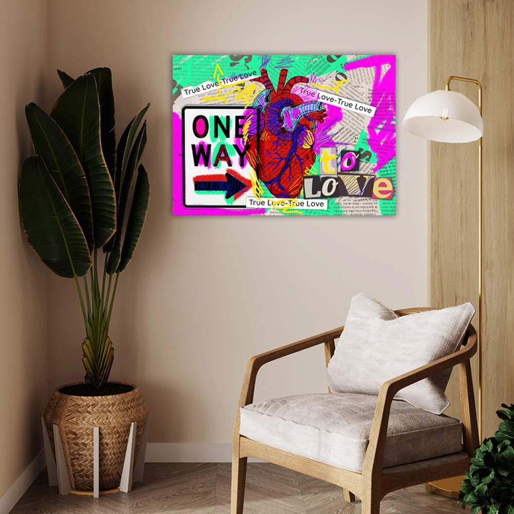 Quadro su Tela Oneway Heart, un mix di colori e disegni che completano un quadro unico nel suo genere.