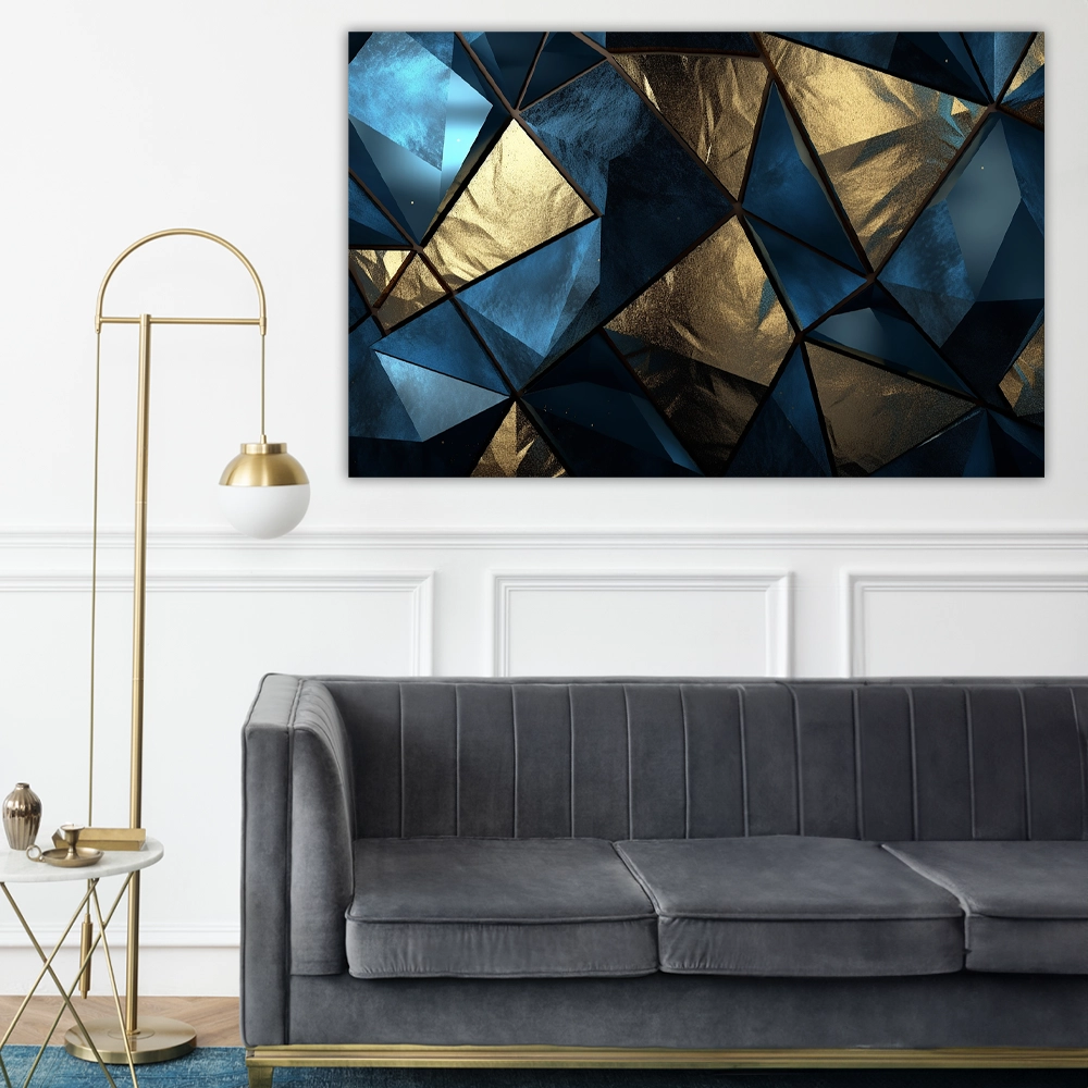 Il quadro su tela mostra un astratto ornamento di colore blu, bianco e grigio, creando un effetto quasi come un vetro. Ideale per tutti i tipi di arredamenti. Colori vivaci e dettagli in primo piano.
