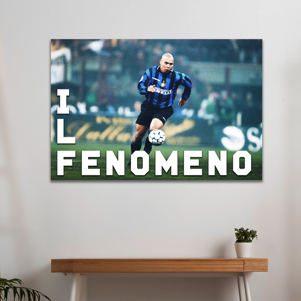Questo quadro su tela è per gli appassionati di calcio e dello sport, raffigura la leggenda Ronaldo Il Fenomeno.