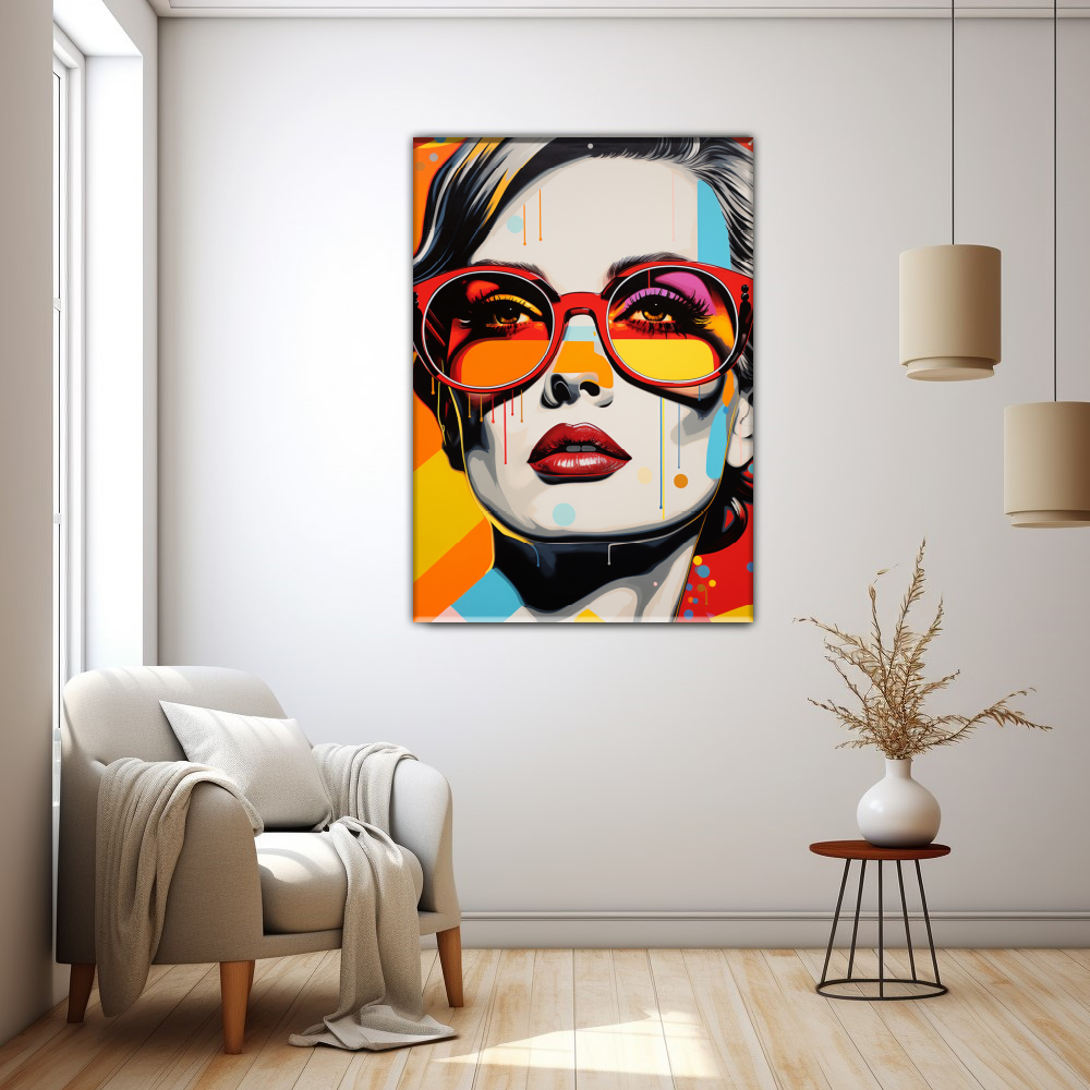 “Sunglass Pop Art” è un’opera affascinante che fonde l’energia dinamica della pop art con l’eleganza senza tempo di una donna con occhiali da sole. Il volto della donna emerge con una grazia audace e un tocco di mistero, mentre gli occhiali da sole aggiungono un elemento di coolness e sofisticatezza.