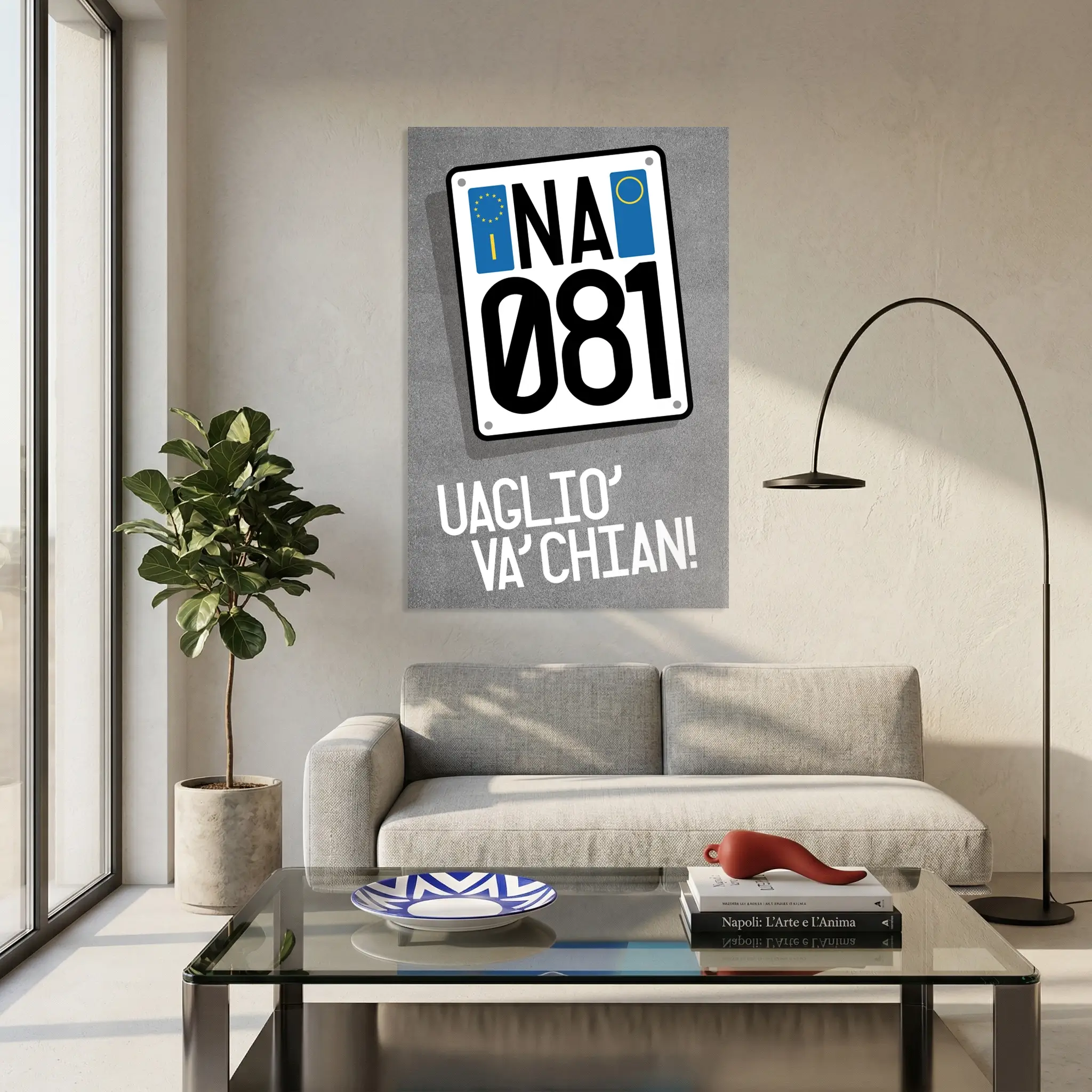 Porta l’inconfondibile energia delle strade di Napoli direttamente a casa tua. Questo quadro unisce design industriale e verace saggezza popolare in un’opera grafica dal forte impatto visivo e dal significato profondo. La targa automobilistica stilizzata riporta “NA” e “081”, la sigla della provincia e lo storico prefisso telefonico.