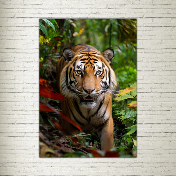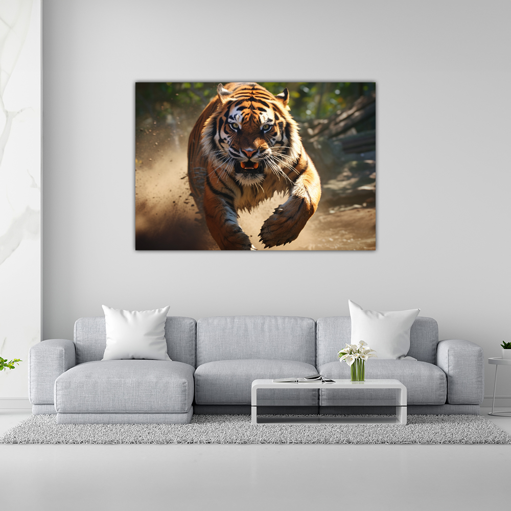 La Potenza della Savana: La tela “La Potenza in Movimento: La Tigre in Corsa” ti trasporta direttamente nella savana africana, dove una tigre sfreccia attraverso l’erba alta. Con la sua muscolatura sinuosa e la sua fiera determinazione, incarna la maestositร dei grandi felini.